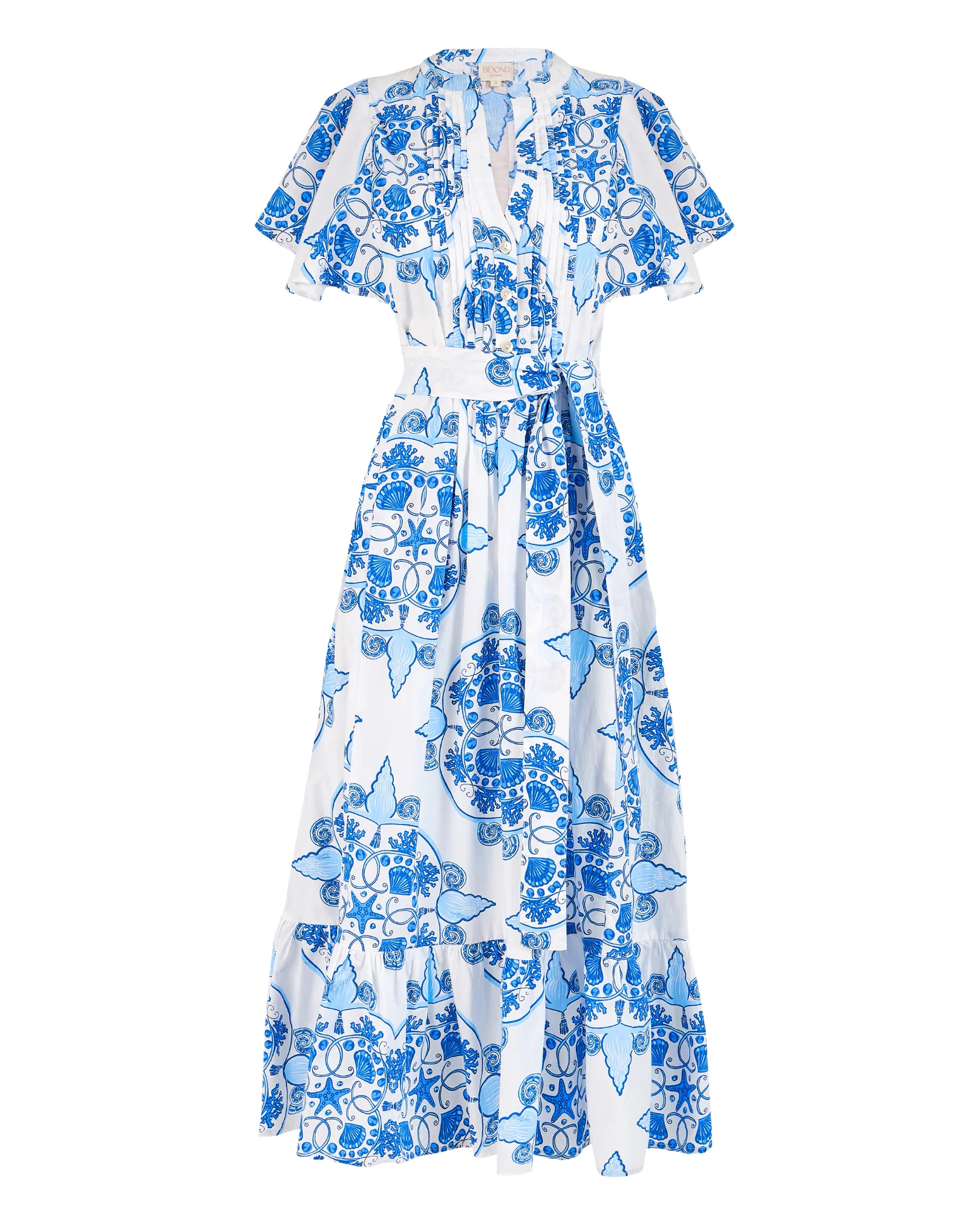 The Leni dress is a true ode to femininity. The universally flattering loose cut is accentuated by subtle pleats and a ruffled hem, while the featured belt cinches in at the waist for a truly enchanting silhouette. Leni is crafted from breathable premium Cotton Poplin. Journey back in time with our ‘Nautilus’ print design, echoing the exquisite 19th century shell drawings of renowned French naturalist Jean Charles Chenu.