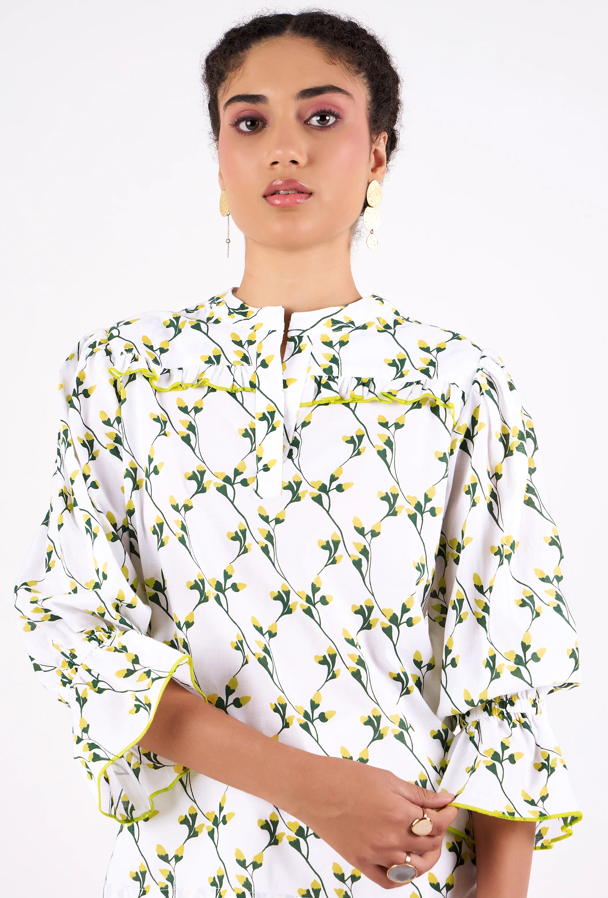 With its slightly puffed 3/4 sleeves, relaxed cut and delicate ruffle details, the Stella is a winner all year round. Pair it with our Gia Midi skirt or with Denim for a casual look. Stella is made from a soft, breathable cotton cambric fabric. Inspired by the wildflowers blooming in spring around the medieval village of Gordes, Provence, this print references the idyllic scenery of the blooming landscape.