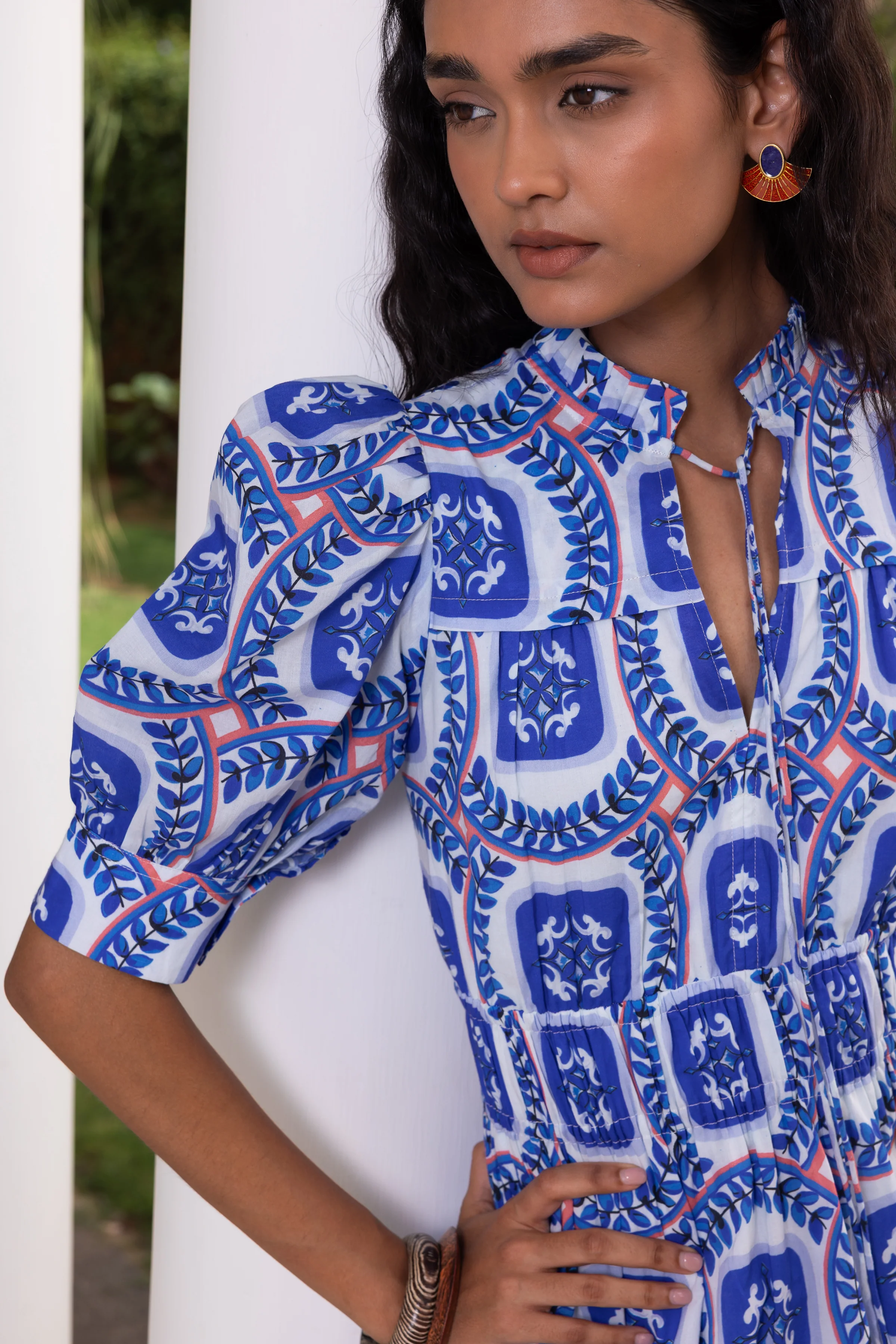 The Alice is the perfect mini dress for sun-filled days and tropical nights. The pleats, smocking details, deep V-neck and flattering shape make Alice a true showstopper. Alice is made from airy cotton voile soft, breathable, and effortlessly breezy. The print’s geometric, circular artwork echoes the tiled floors of old Sicilian villas. A fresh take on Mediterranean tradition, Palermo captures the everyday beauty of southern Italy: faded stone, sea breeze, and sunlit interiors.