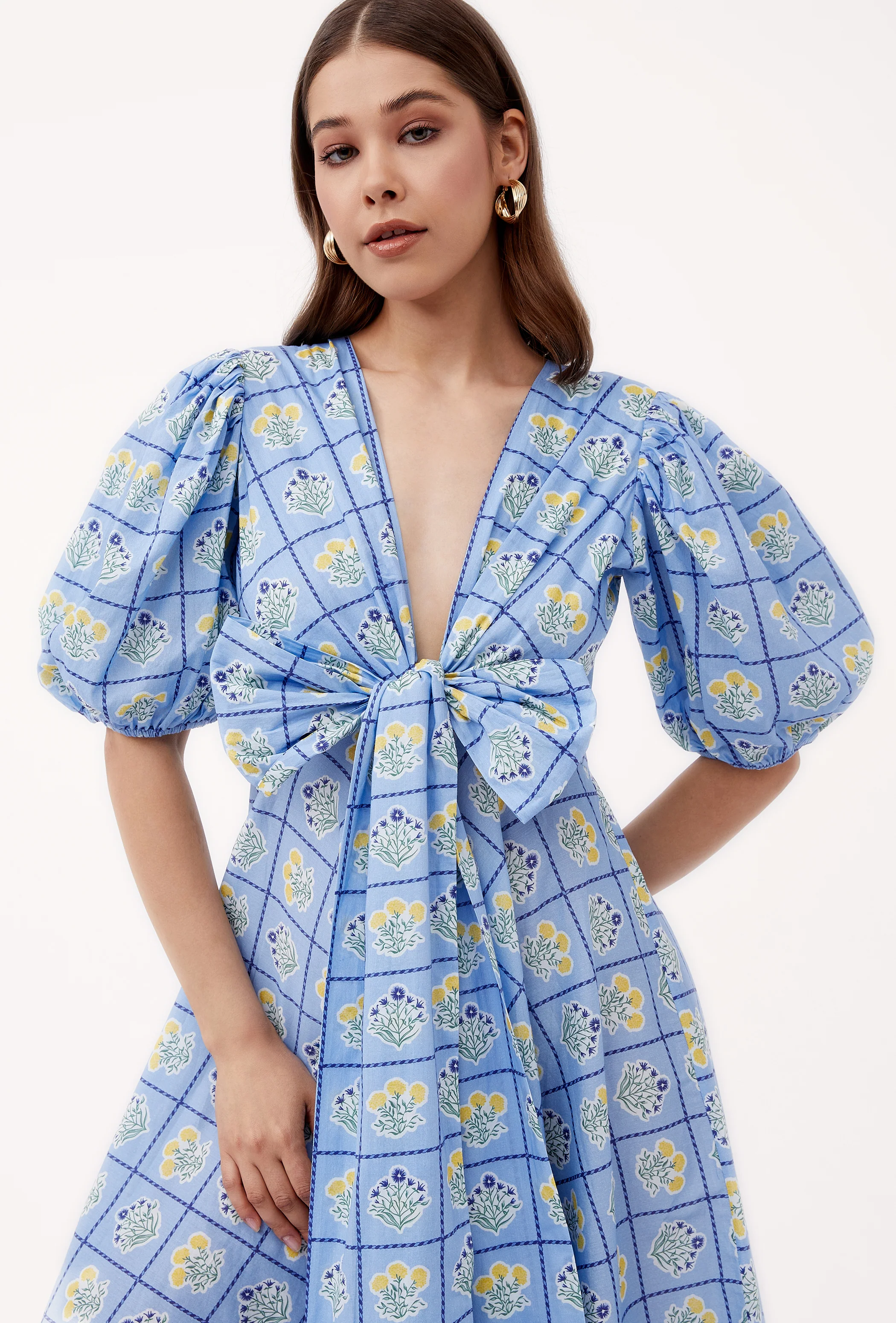 Lola is our signature style and all-time favorite. Crafted from 8 meters of softest, breathable cotton, the Lola is made to twirl in and spread joy! She is chic, easy-to-wear and incredibly versatile: Tie her in the front (with a bow) for an enticing, deep V-neckline or in the back for a bit more coverage. Inspired by a sun-drenched beach day, the artwork references the sorbet-colored beach umbrellas dotting Positano's coastline.